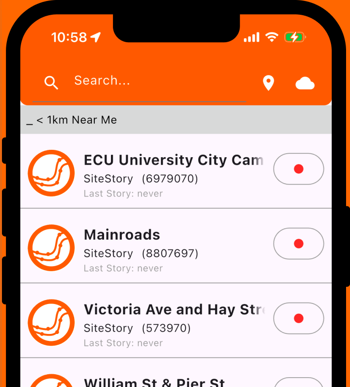 Your sites are already listed when you open the app. No searching, no typing. Just tap your site and hit record. Documentation that used to take extra steps now takes none.